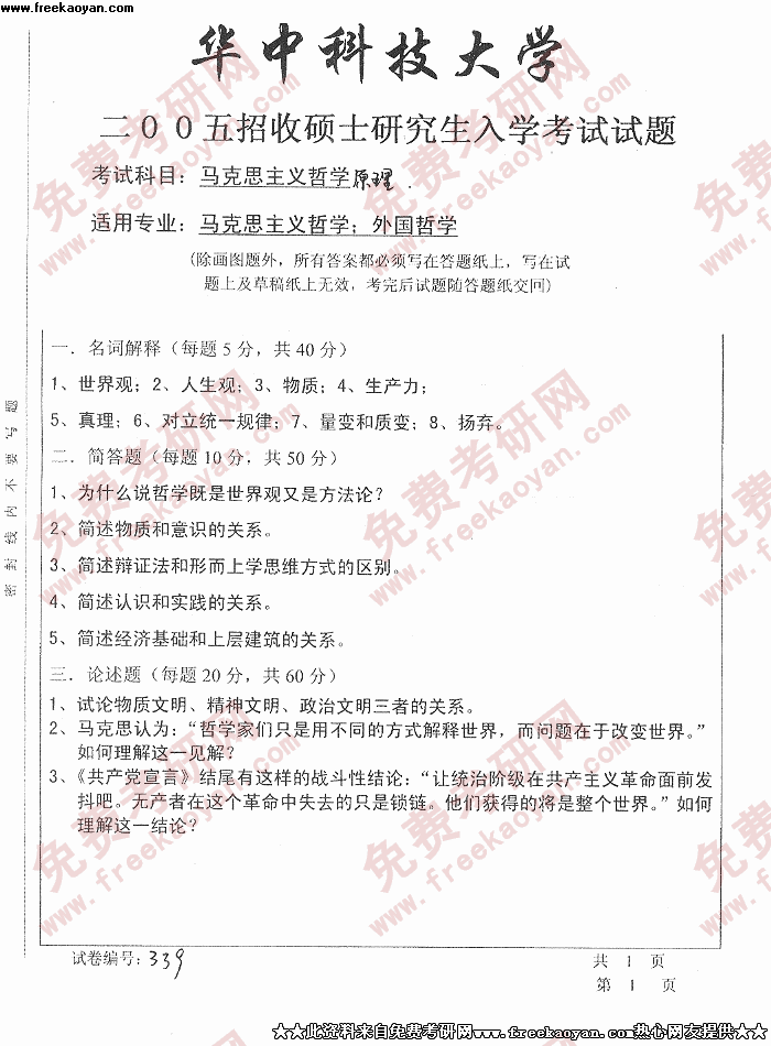 相关话题/考研真题 马克思主义哲学 华中科技大学 原理
