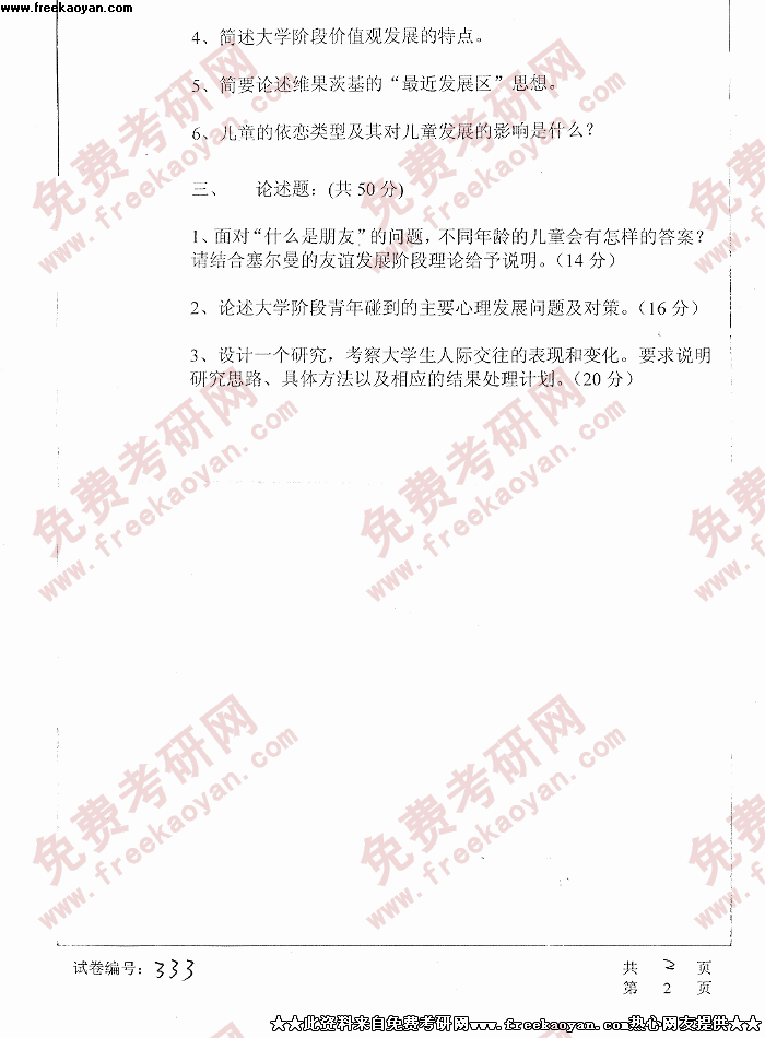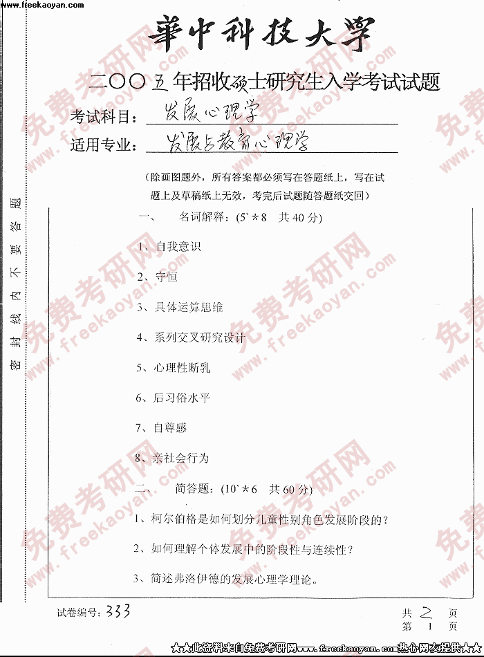 华中科技大学2005年考研真题-发展心理学