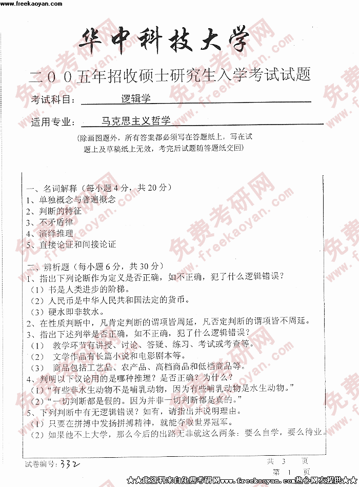 华中科技大学2005年考研真题-马克思主义哲学原理
