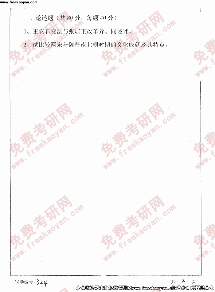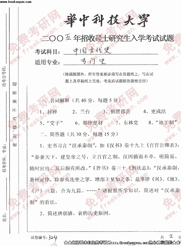 华中科技大学2005年考研真题-中外经济史及经济思想史
