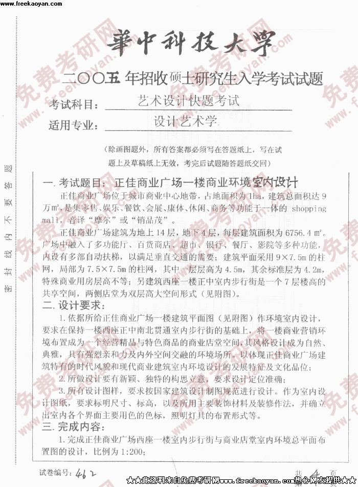 华中科技大学2005年考研真题-艺术设计快题考试