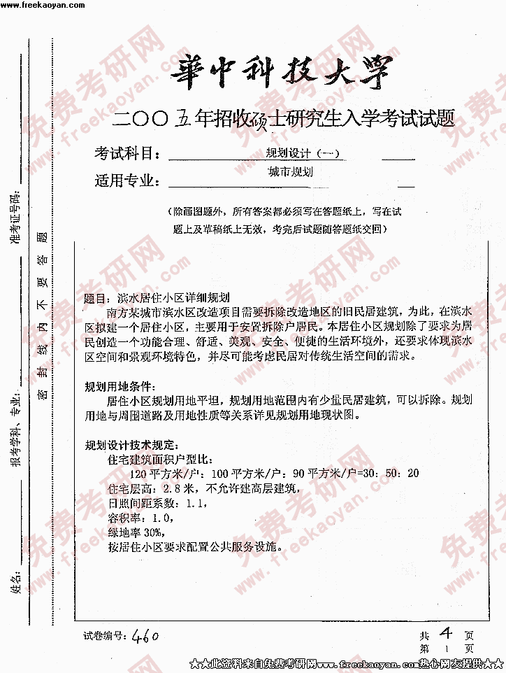 华中科技大学2005年考研真题-城市规划(风景园林方向)