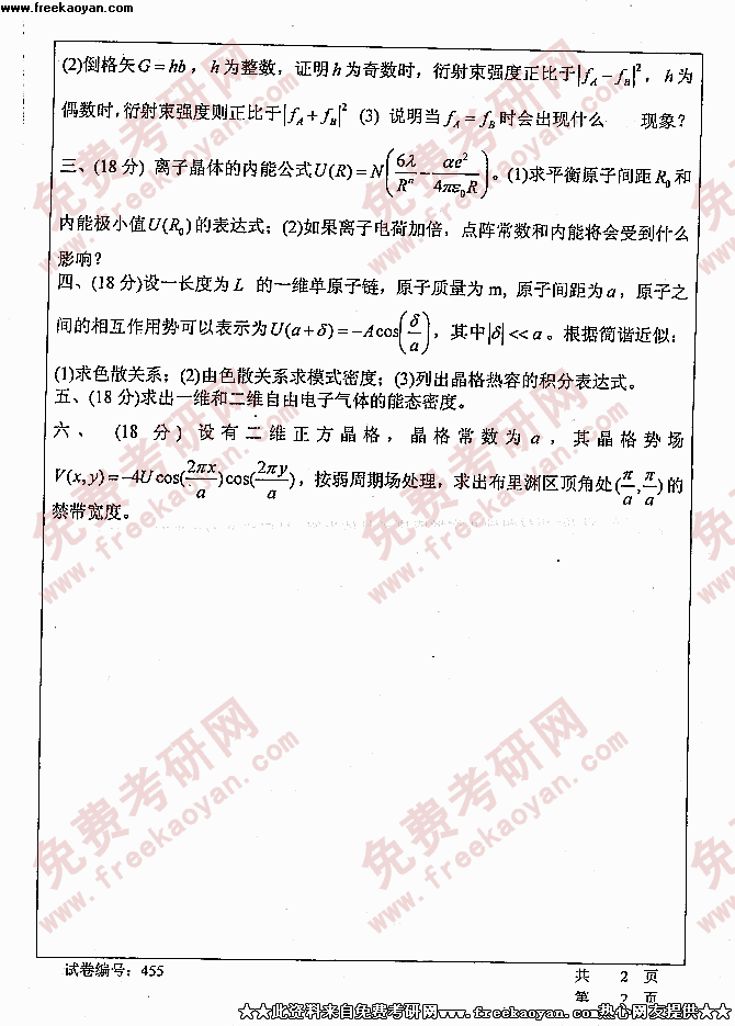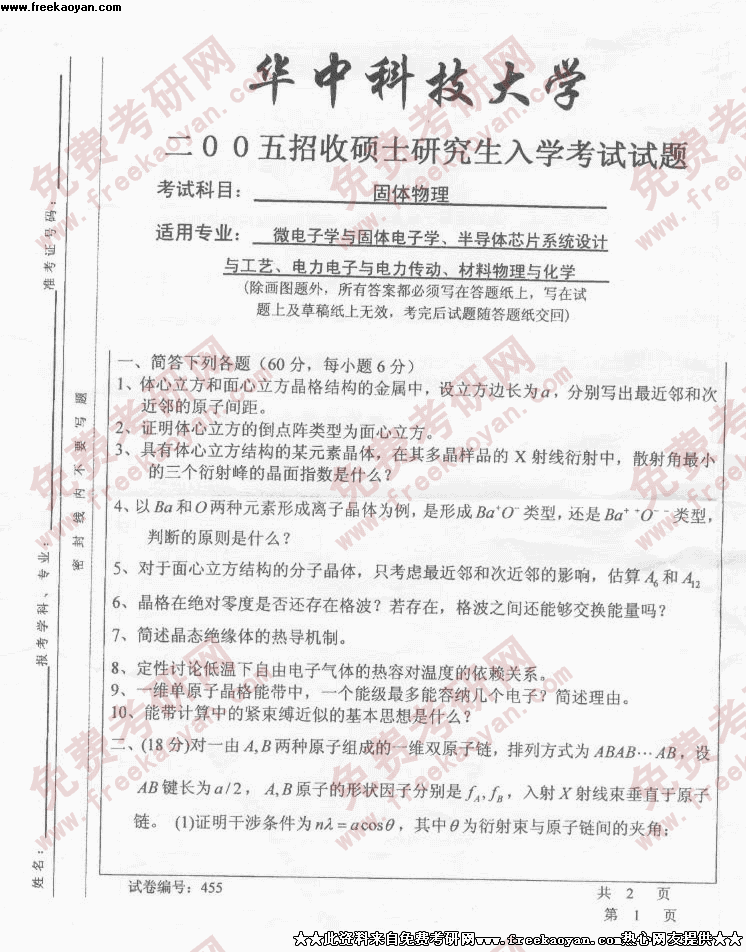 华中科技大学2005年考研真题-专业技术综合课(物理电子学)