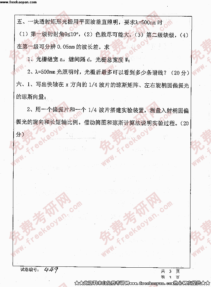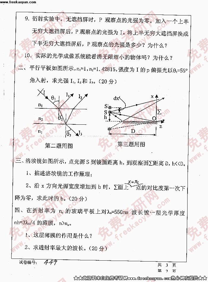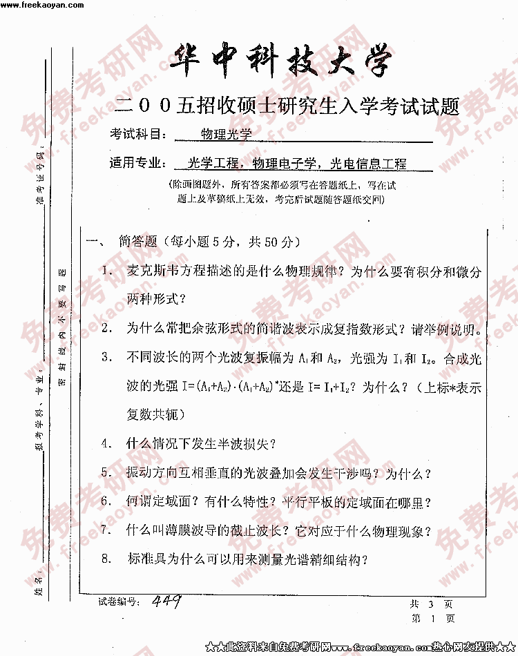 华中科技大学2005年考研真题-物理光学
