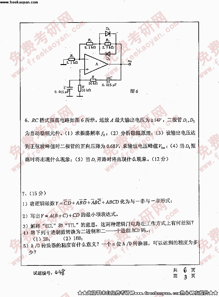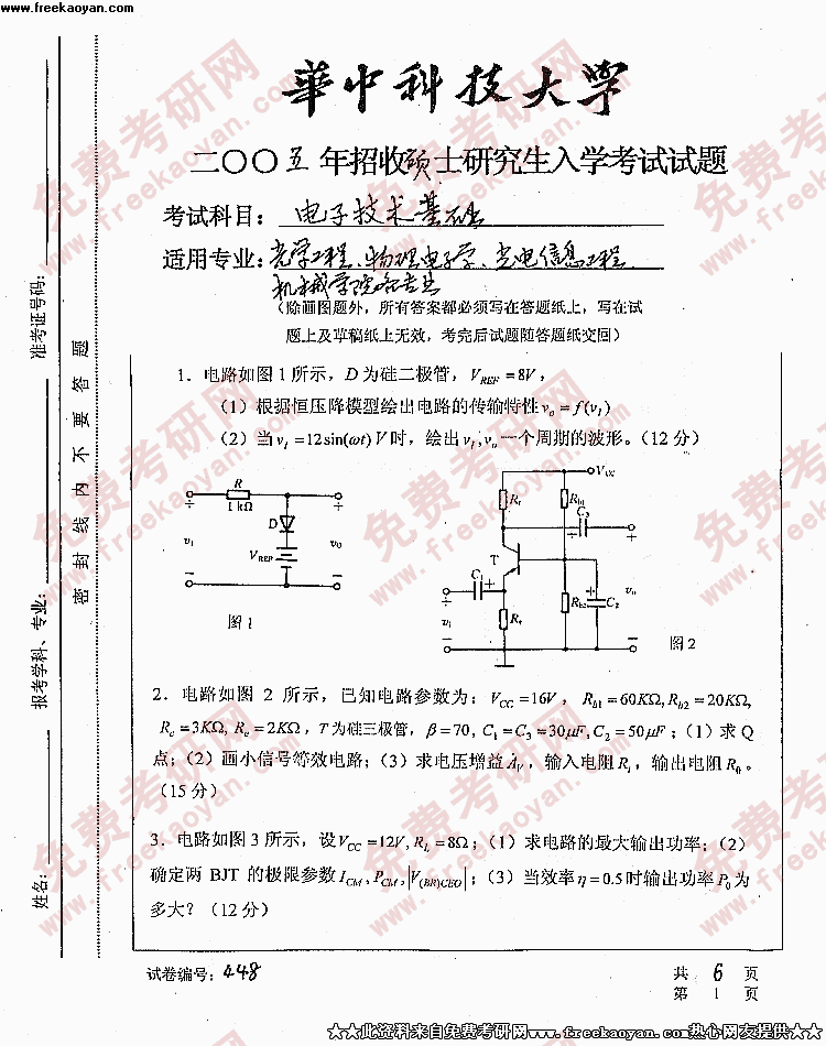 华中科技大学2005年考研真题-电子技术基础