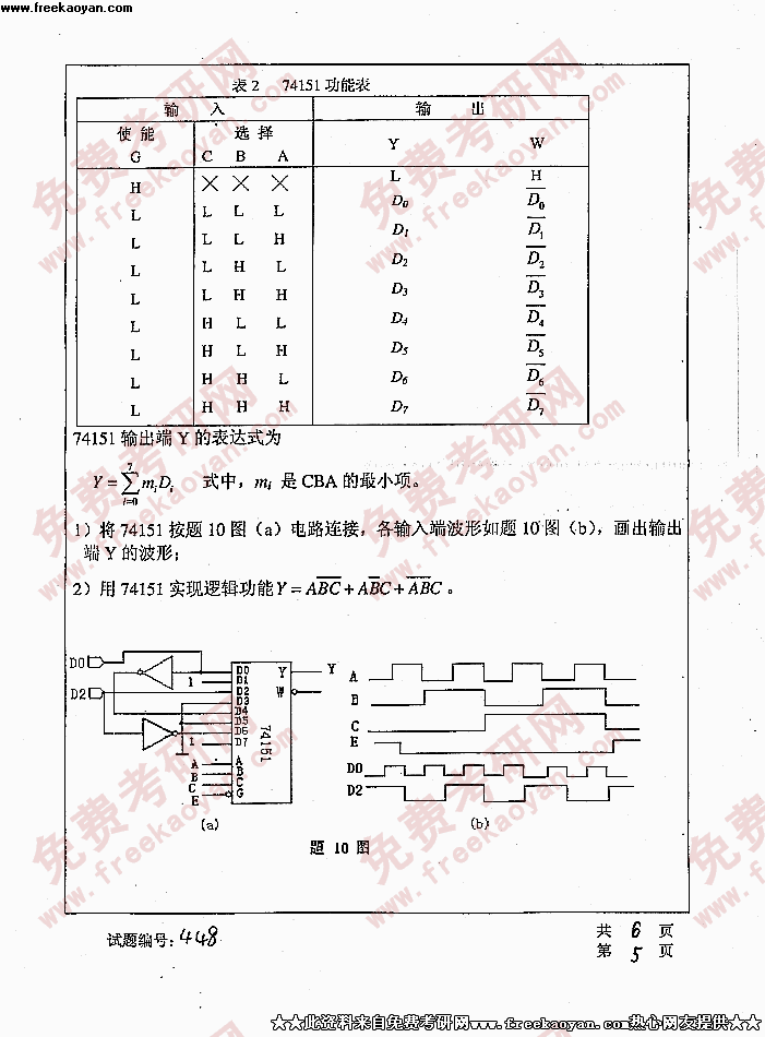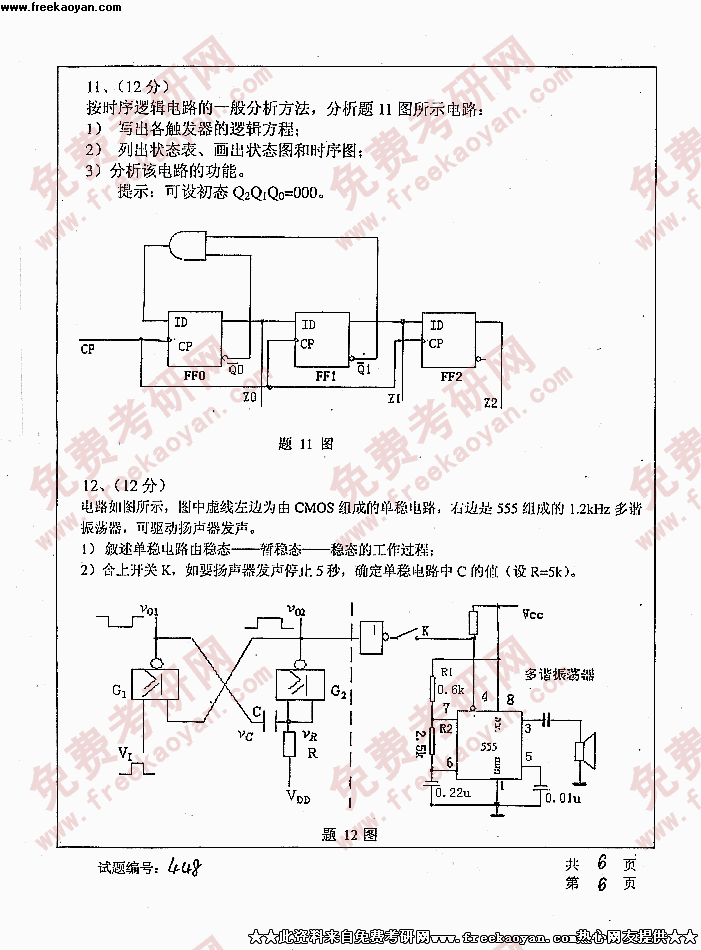 华中科技大学2005年考研真题-综合考试(传感器原理数字、电子数字)