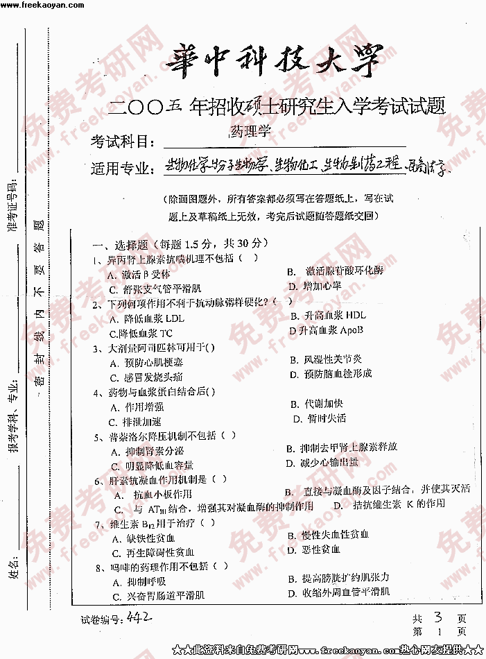 华中科技大学2005年考研真题-综合考试(机械制造及自动化、计算机应用技术)