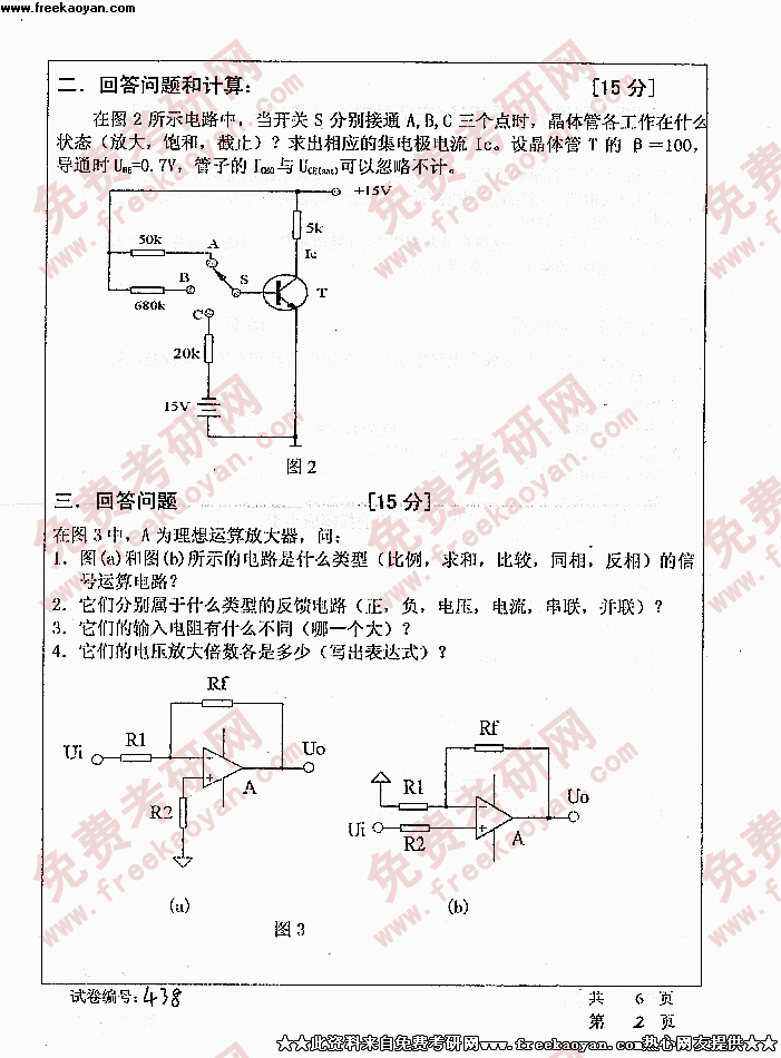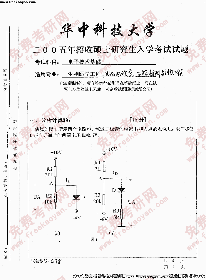 华中科技大学2005年考研真题-电子技术基础