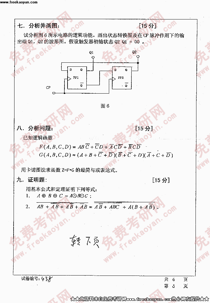 华中科技大学2005年考研真题-综合考试(传感器原理数字、电子数字)