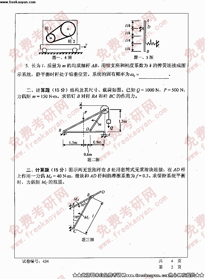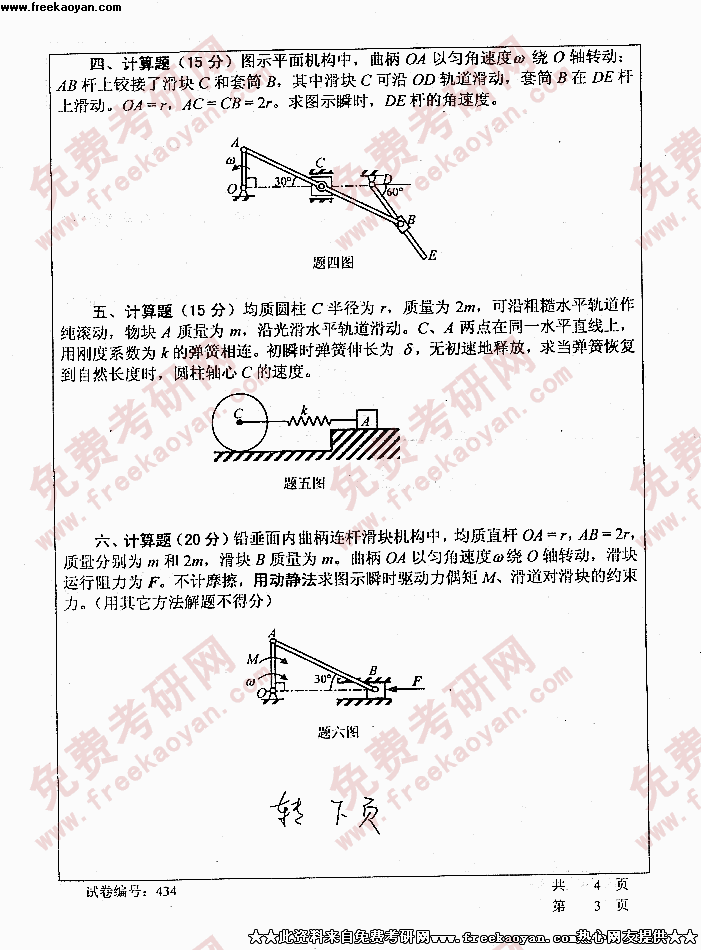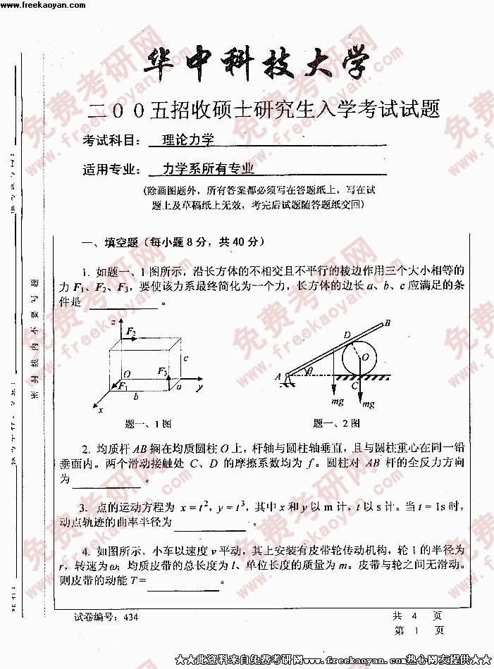 华中科技大学2005年考研真题-理论力学