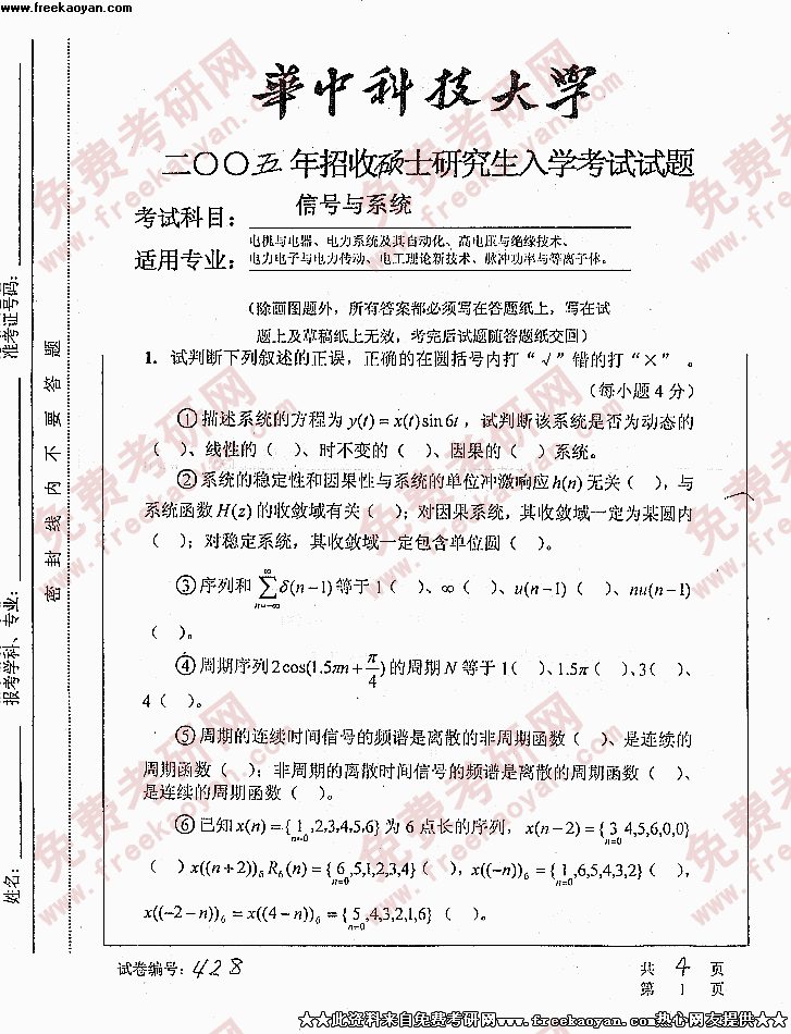 华中科技大学2005年考研真题-《微机原理》《通讯电子线路》综合考试