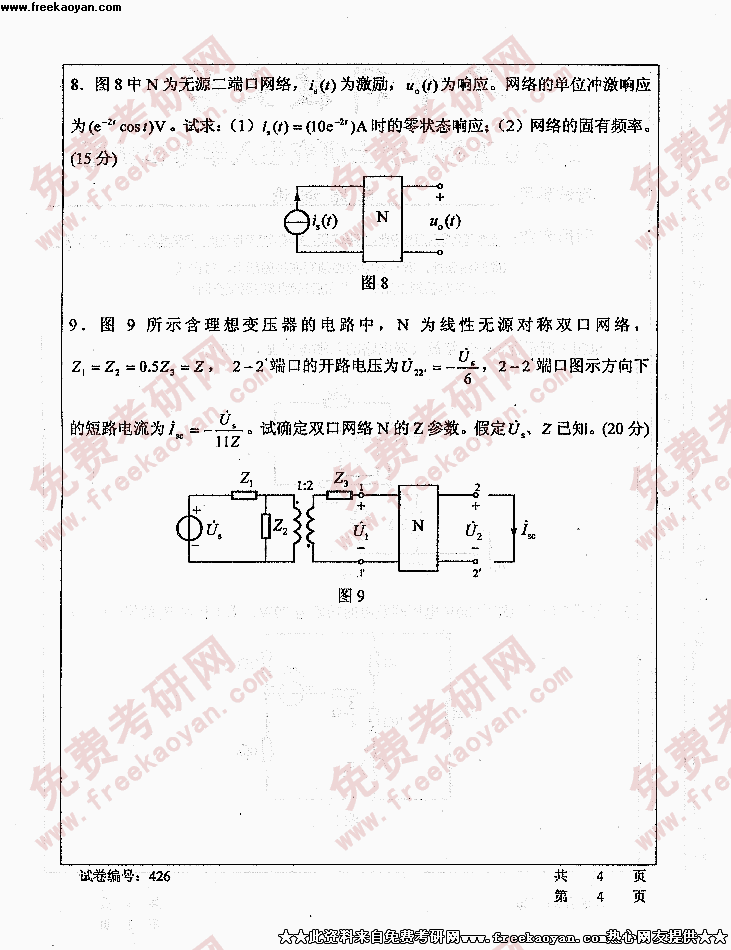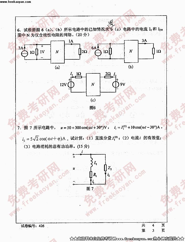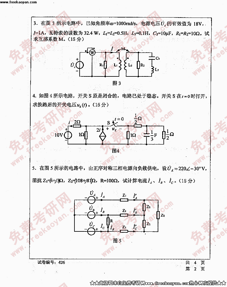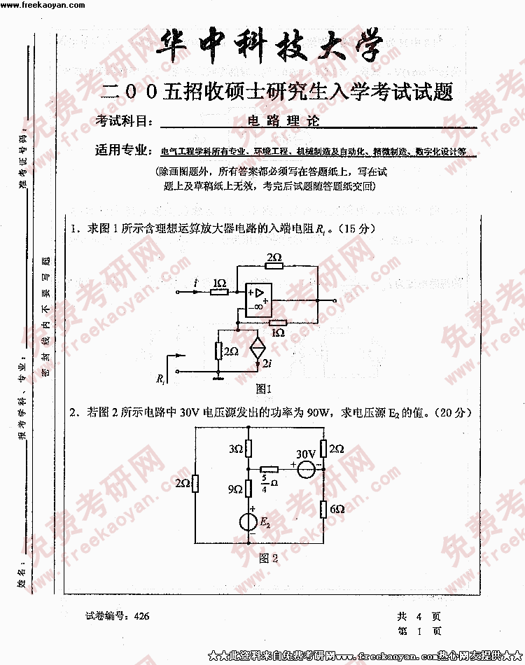 华中科技大学2005年考研真题-电路理论