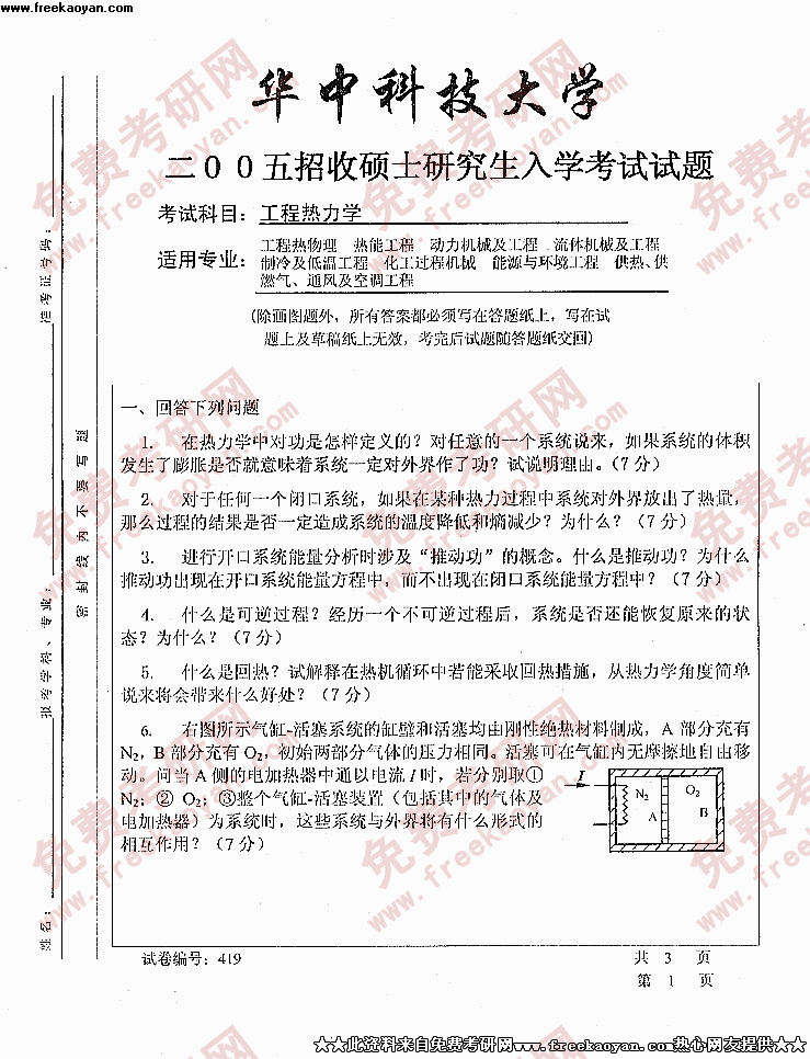 华中科技大学2005年考研真题-材料力学(船舶设计、水下工程)
