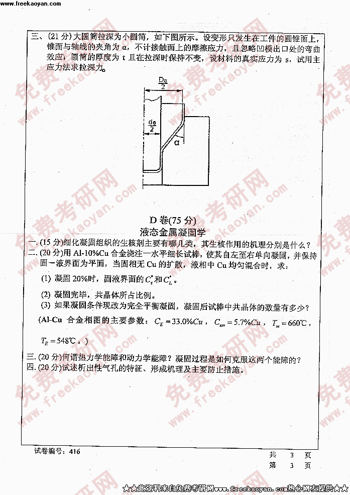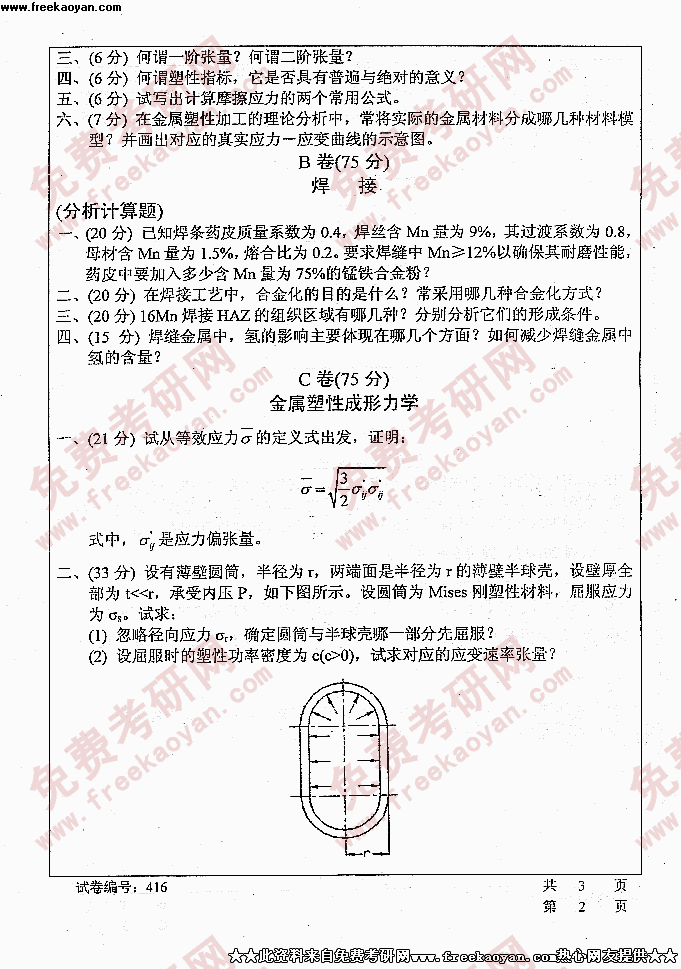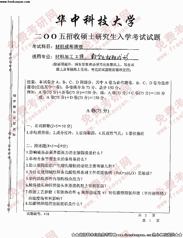 华中科技大学2005年考研真题-材料力学(岩土工程、道路与铁道工程)