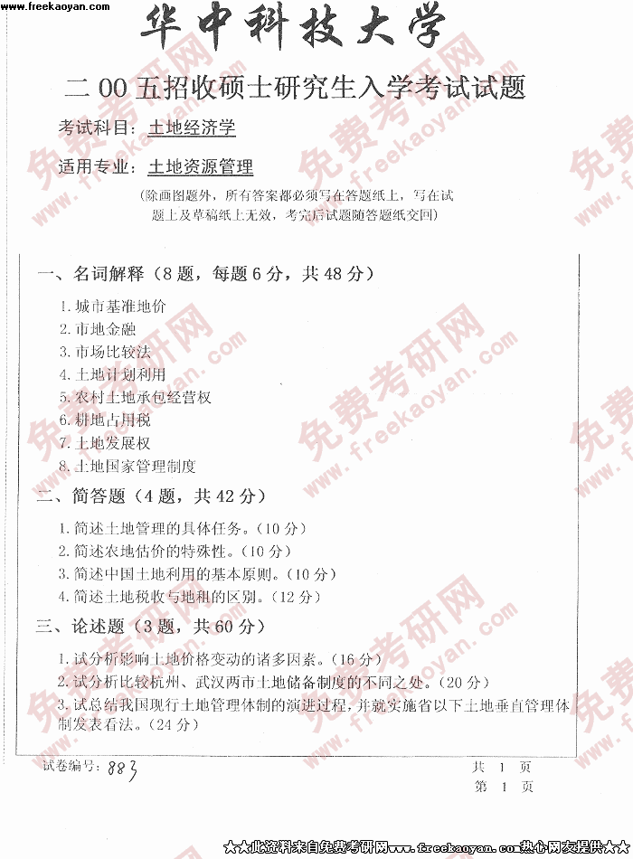 专业课考研经验 本站小编 FreeKaoyan 2018-01-22华中科技大学2005年考研真题-教育经济学