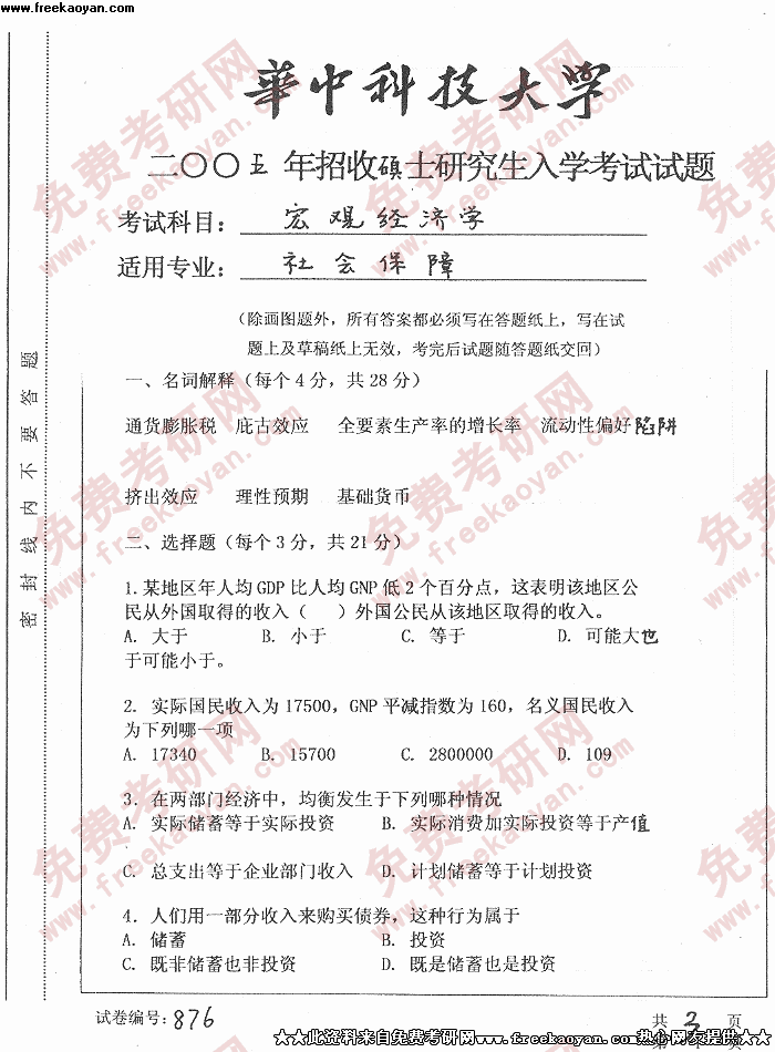 华中科技大学2005年考研真题-英汉互译与英语作文
