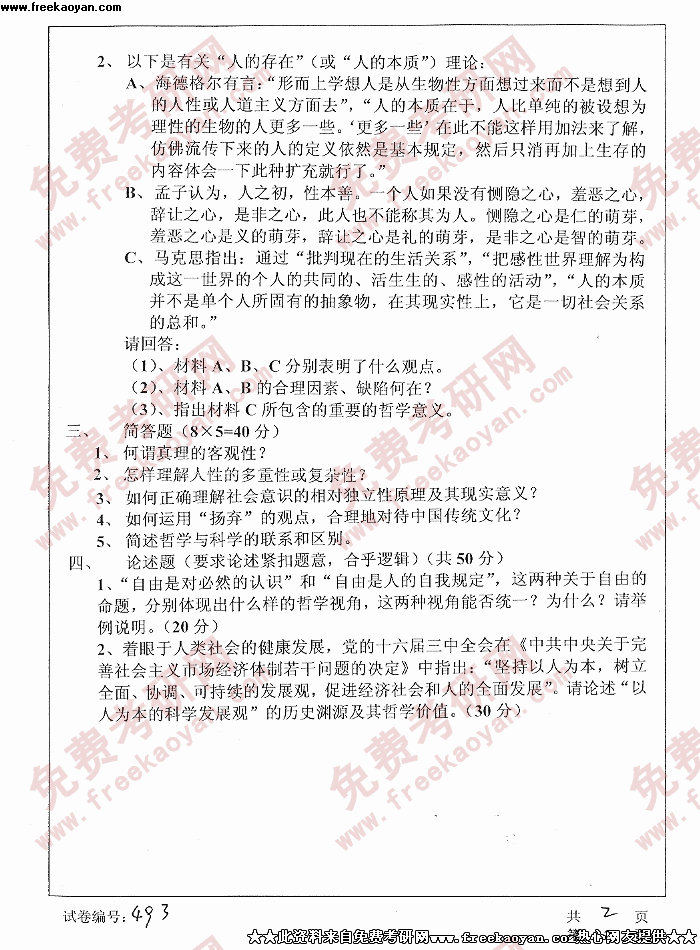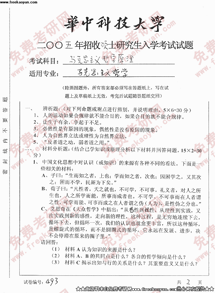华中科技大学2005年考研真题-马克思主义哲学原理