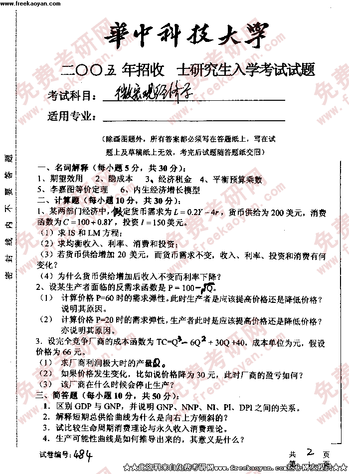华中科技大学2005年考研真题-马克思主义哲学原理