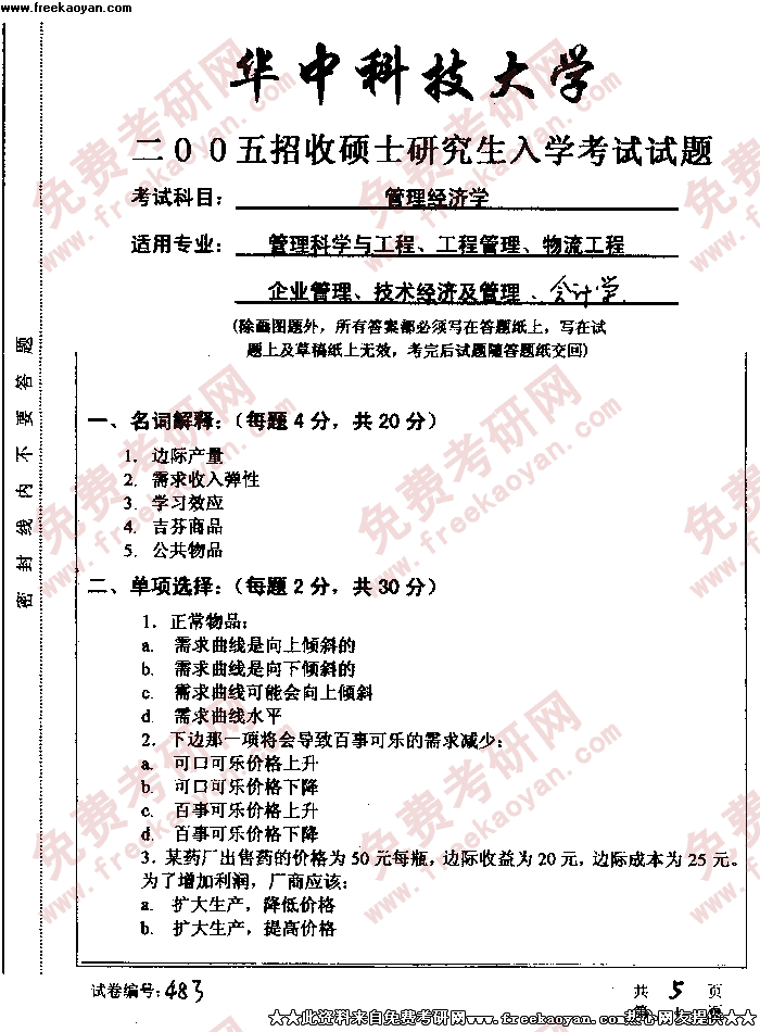 华中科技大学2005年考研真题-马克思主义哲学原理