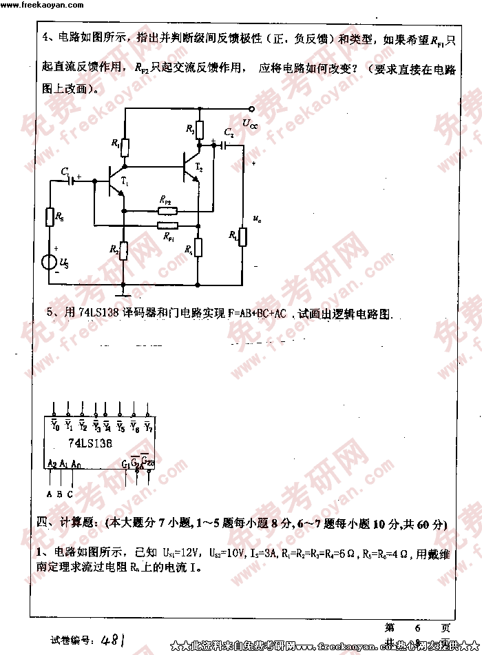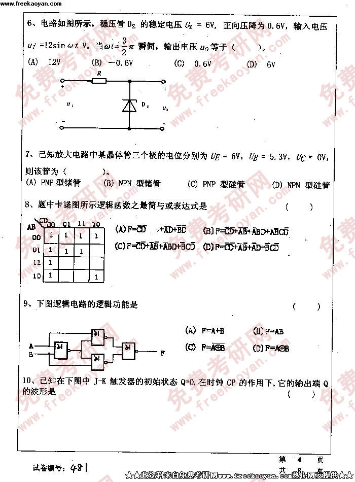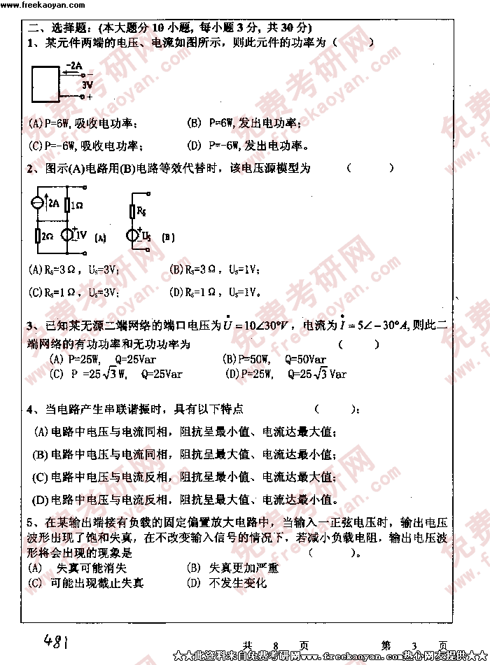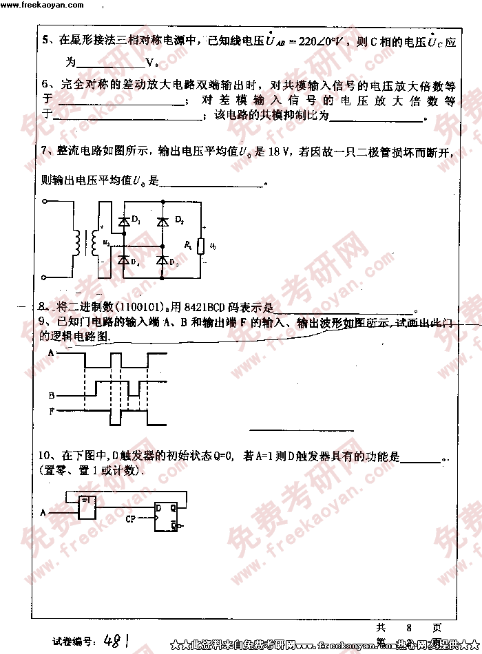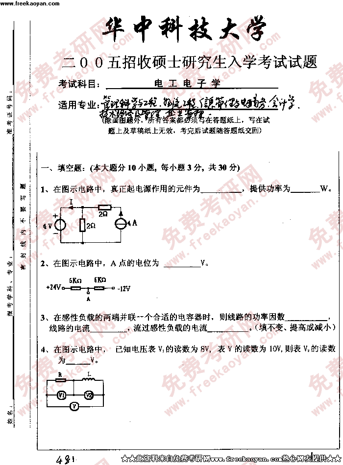 华中科技大学2005年考研真题-电工电子学