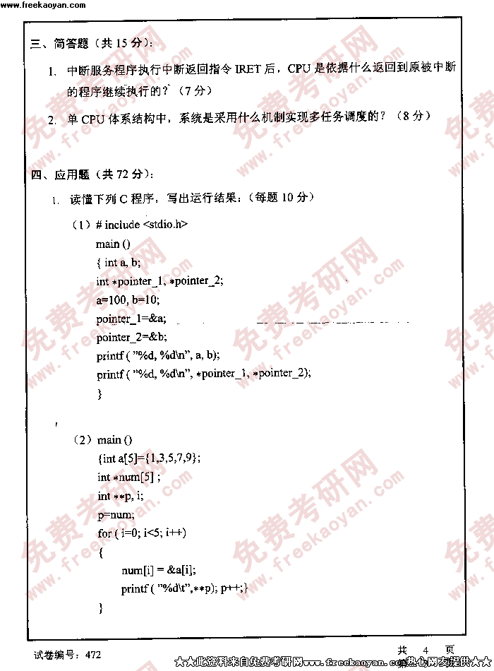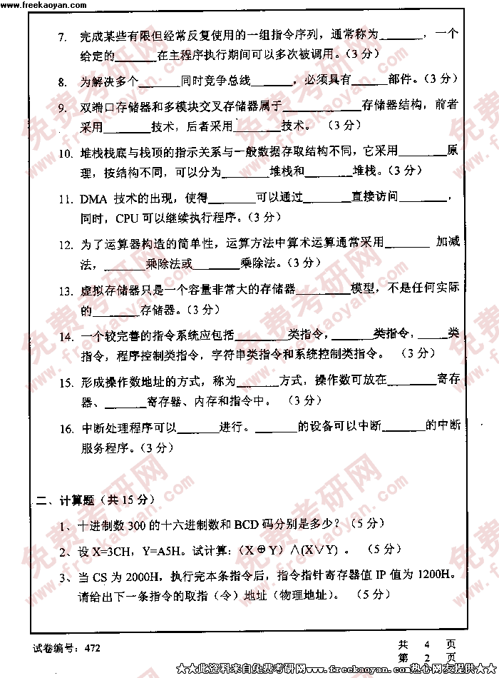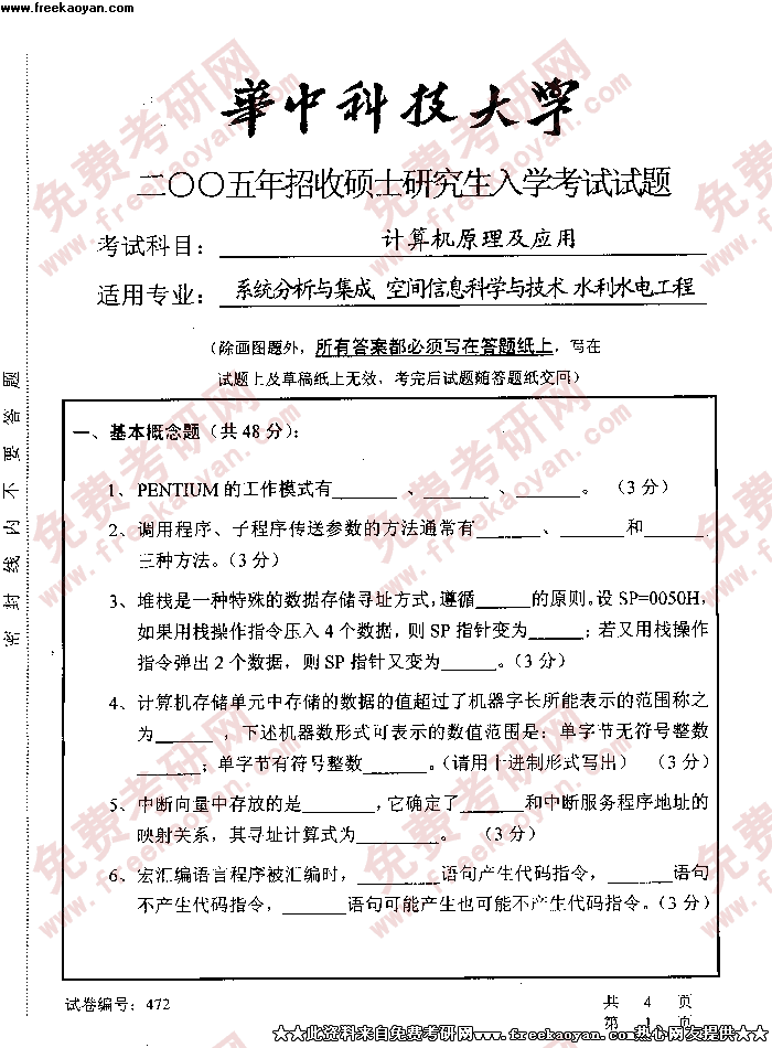 华中科技大学2005年考研真题-计算机原理及应用