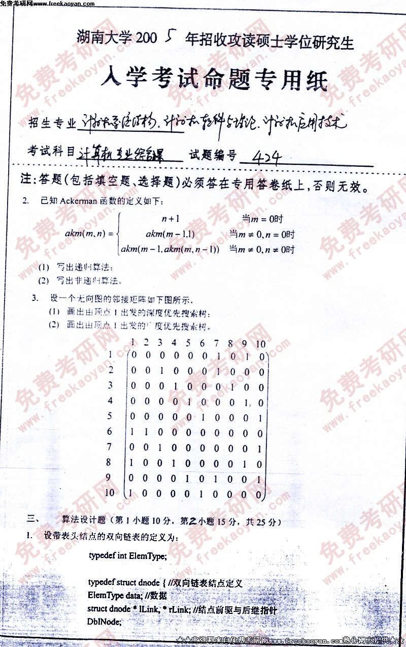 专业课考研经验 本站小编 FreeKaoyan 2018-01-22湖南大学2004年招收攻读硕士学位研究生入学考试命题专用纸招生专业:新闻学、传播学考试科目:新闻传播事务,试题编号:470…………………………………………………………………………………………注:答题(包括填空题、选择题)必须答在专用答卷纸上,否则无效。一、 名词解释(共25分,每小题5分)1. 新闻 ...