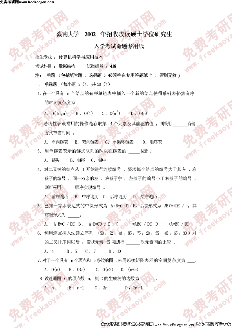 专业课考研经验 本站小编 FreeKaoyan 2018-01-22湖南大学2004年招收攻读硕士学位研究生入学考试命题专用纸招生专业:新闻学、传播学考试科目:新闻传播事务,试题编号:470…………………………………………………………………………………………注:答题(包括填空题、选择题)必须答在专用答卷纸上,否则无效。一、 名词解释(共25分,每小题5分)1. 新闻 ...