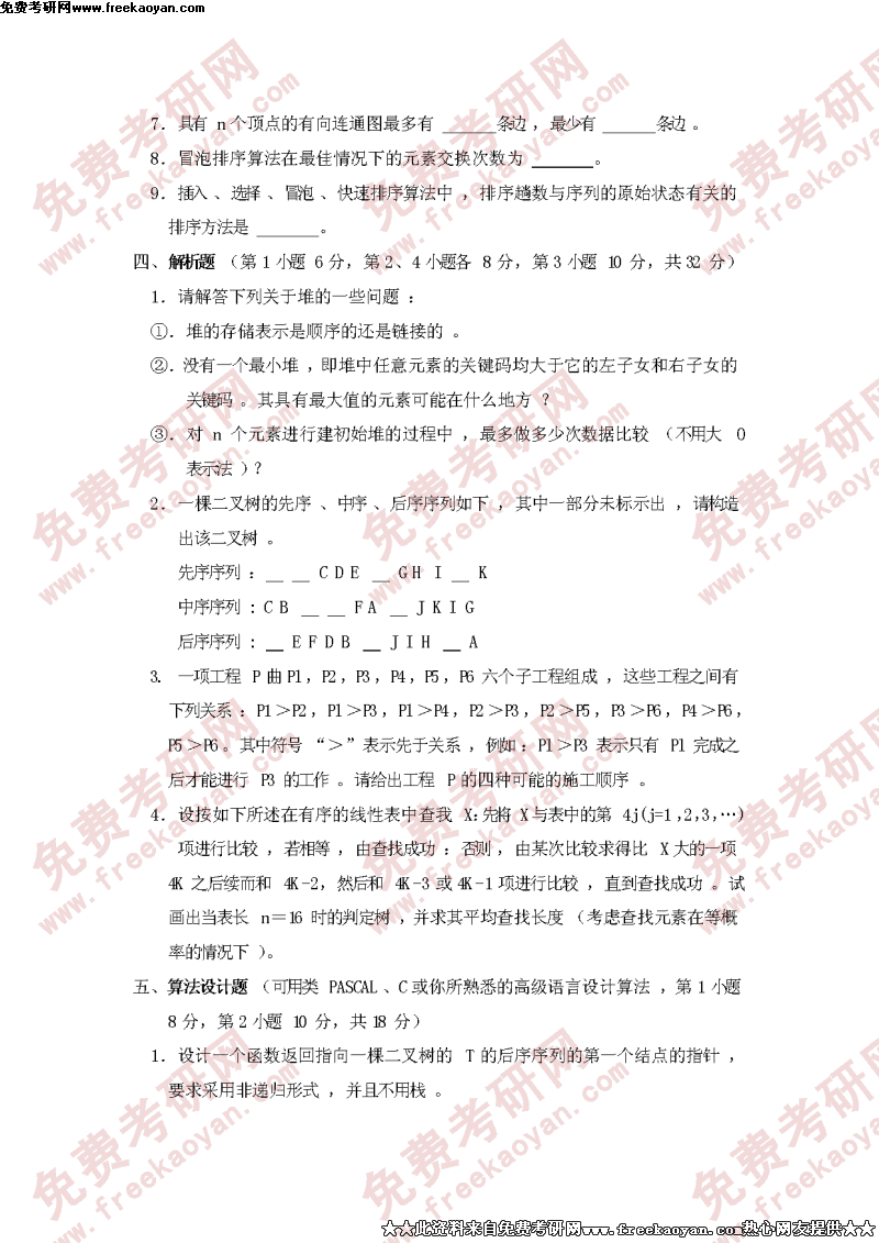 专业课考研经验 本站小编 FreeKaoyan 2018-01-22一.概念题(4*4)1. 货币需求函数2. 内源性融资3. 绝对购买力平价4. 丁伯根原则二.简答:(8*4)1. 同业拆借市场主要有哪些交易?2. 主板市场和创业板市场有哪些区别?3. 简述资产市场说的主要内容4. 简述“托宾税”的含义,方案和实施条件三.计算:(8*2)1. 某年物价指数为97, ...