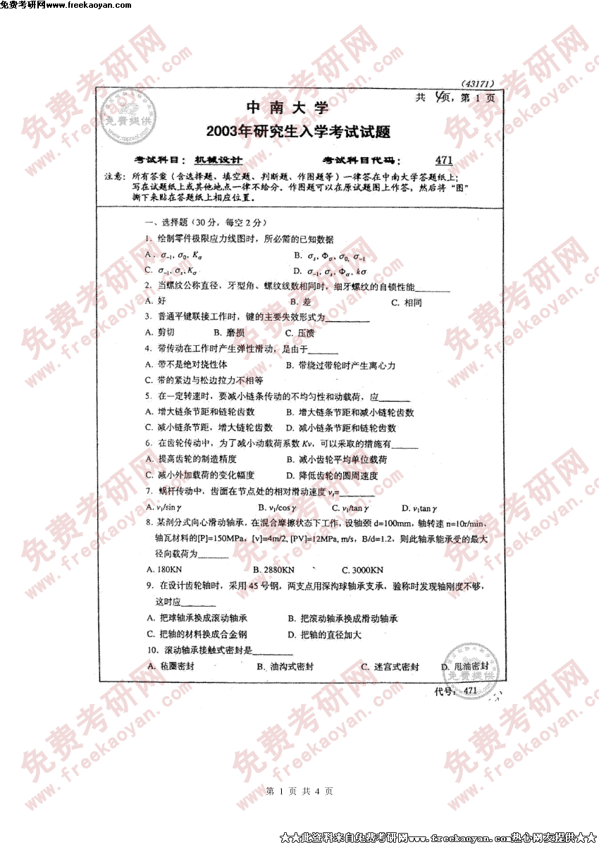 中南大学2003年考研真题-机械设计