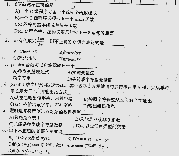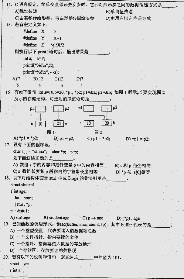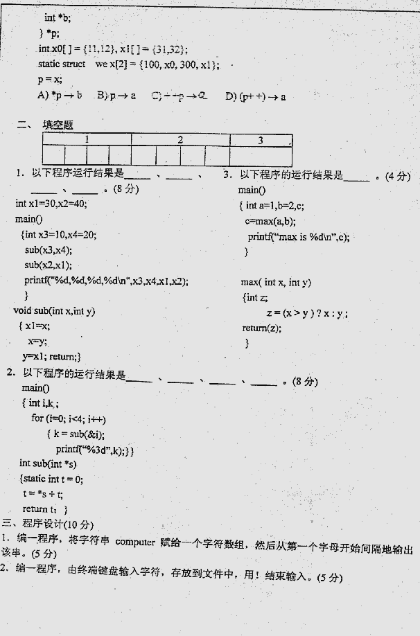 西安电子科技大学1999年考研真题-操作系统和C语言