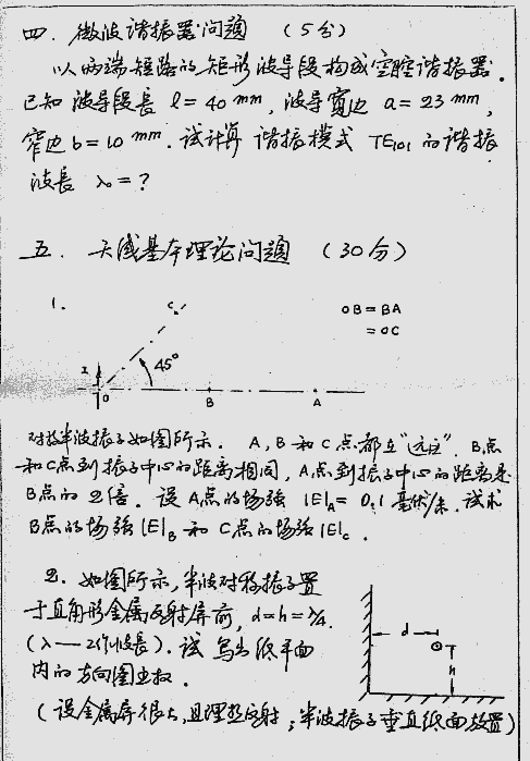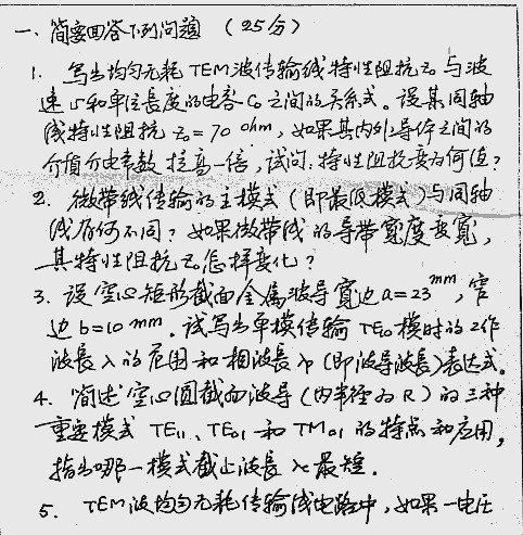 西安电子科技大学1997年考研真题-微波技术与天线基本理论