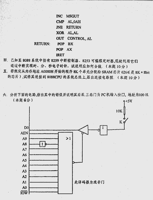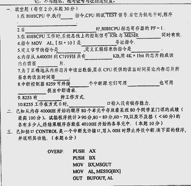 西安电子科技大学2000年考研真题-微机原理与程序设计(16位)