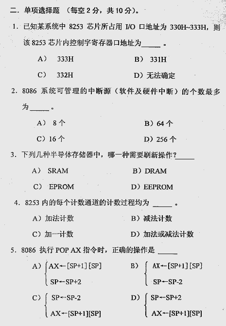 专业课考研经验 本站小编 FreeKaoyan 2018-01-22西安电子科技大学2000年考研真题-微机原理与程序设计(16位)