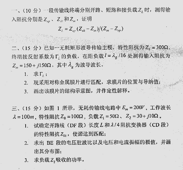 专业课考研经验 本站小编 FreeKaoyan 2018-01-22西安电子科技大学1997年考研真题-微波技术与天线基本理论