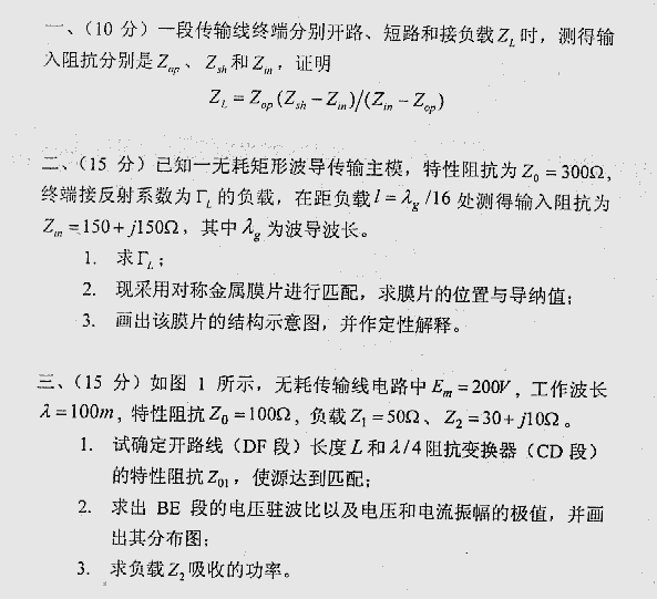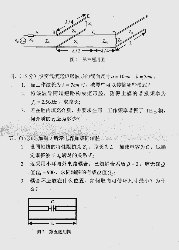 西安电子科技大学2000年考研真题-微波技术与天线基本理论