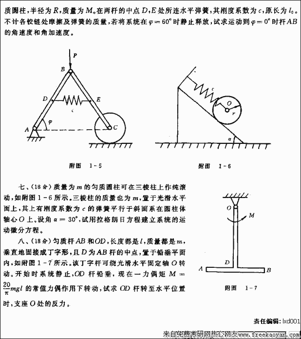 专业课考研经验 本站小编 FreeKaoyan 2018-01-22西安交通大学1996年考研真题-理论力学