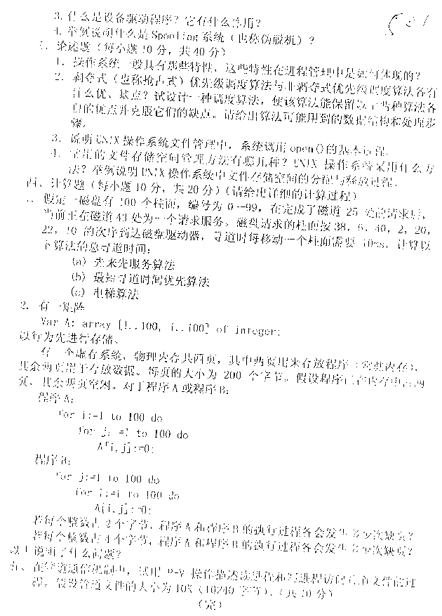西安交通大学1999年研究生入学考试 离散数学试题1 (30分) 请判断下列各题的正确性。⑴ 2A∩2B=2A∩B。⑵ A/B=A当且仅当B=。⑶ (A′C)/(B′D)=(A/B)′(C/D)。⑷ 设|A|=5,则A上恰有31个不同的等价关系。⑸ 设R非空集合A上的关系,R是A上可传递的,当且仅当 ...专业课考研经验 本站小编 FreeKaoyan 2018-01-22西北工业大学2000年考研真题-操作系统