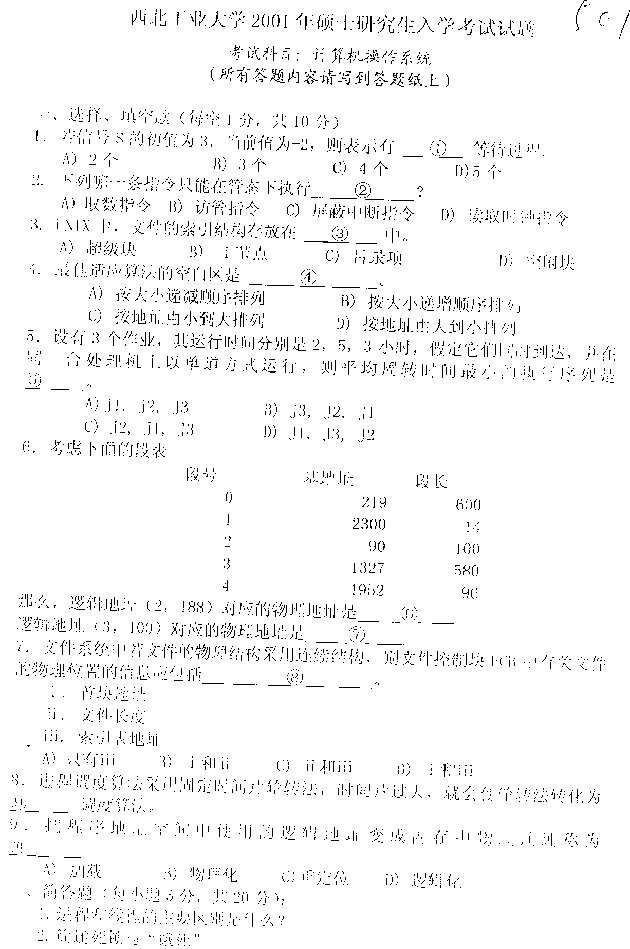 西北工业大学2000年硕士研究生入学考试操作系统试题考试科目:操作系统说明:本试题公共八道大题,满分100)一、填空(本题共12分,每空1分)1、操作系统提供给程序员的接口是___(1)_____.A)进程 B)系统调用 C)库函数 D)B和 C2、设有8页的逻辑空间,每页有1024字,它们被映射到 ...专业课考研经验 本站小编 FreeKaoyan 2018-01-22西安交通大学2000年考研真题-理论力学