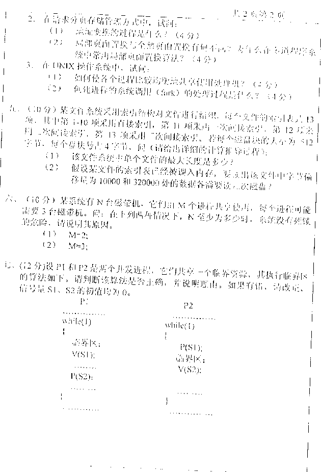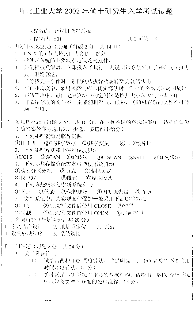 专业课考研经验 本站小编 FreeKaoyan 2018-01-22西北工业大学2001年考研真题-操作系统