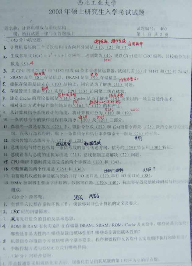 相关话题/考研真题 西北工业大学 计算机 结构 系统