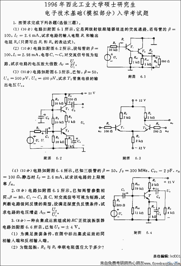 专业课考研经验 本站小编 FreeKaoyan 2018-01-22西北工业大学1996年考研真题-电子技术基础