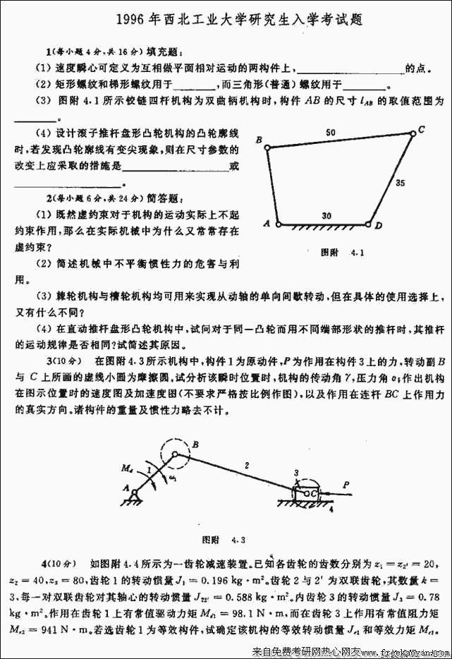 专业课考研经验 本站小编 FreeKaoyan 2018-01-22西北工业大学2000年考研真题-理论力学