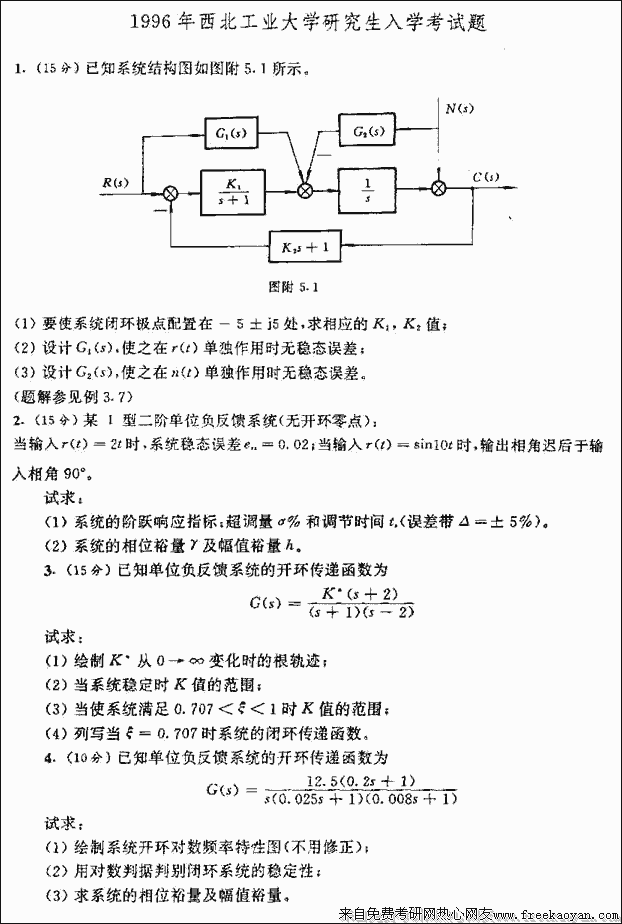 专业课考研经验 本站小编 FreeKaoyan 2018-01-22西北工业大学1996年考研真题-机械原理