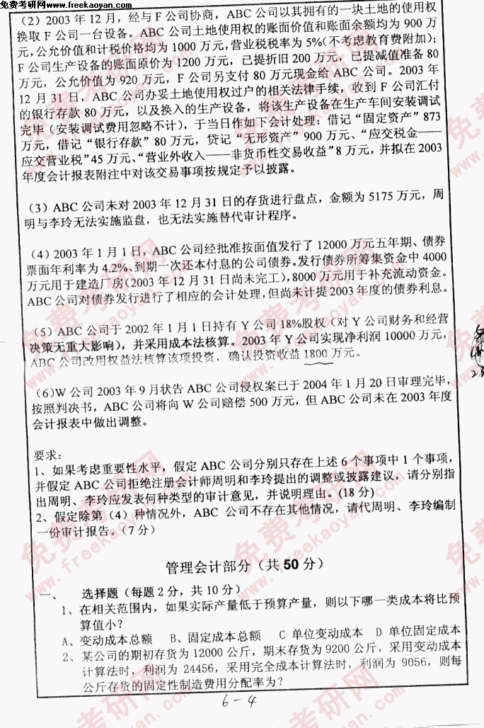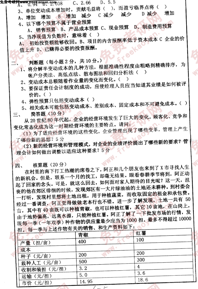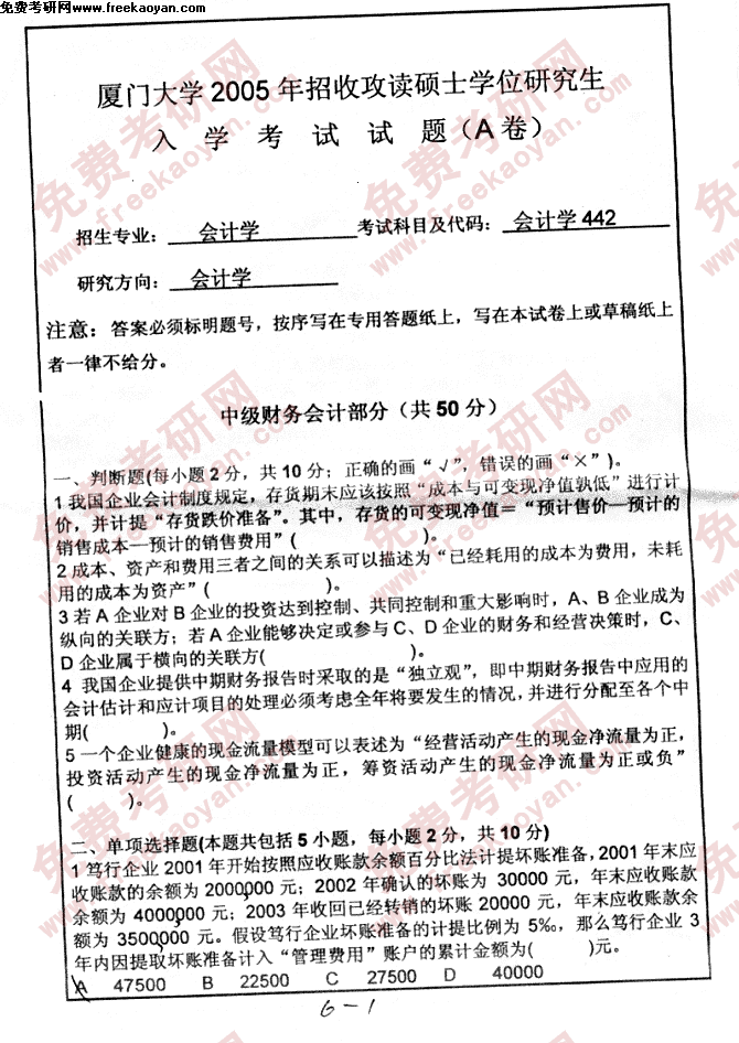 专业课考研经验 本站小编 FreeKaoyan 2018-01-22厦门大学1991年硕士研究生入学考试物理化学下载 ...