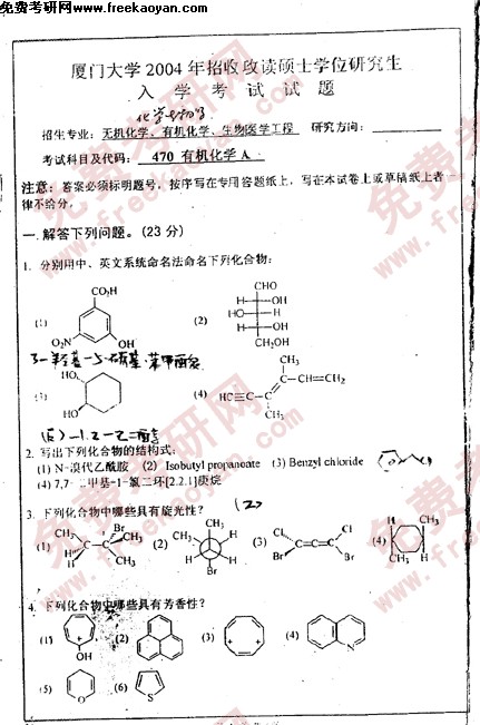 专业课考研经验 本站小编 FreeKaoyan 2018-01-22厦门大学1991年硕士研究生入学考试物理化学下载 ...