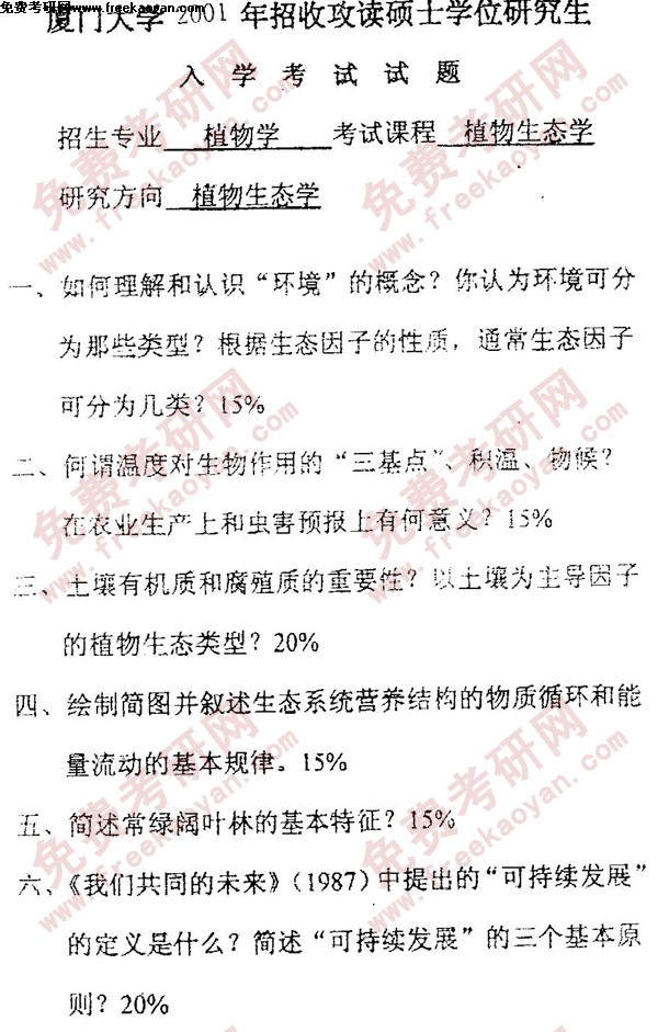 厦门大学2001年硕士研究生入学考试阅读理解及语言学、英美文学基础知识下载 ...