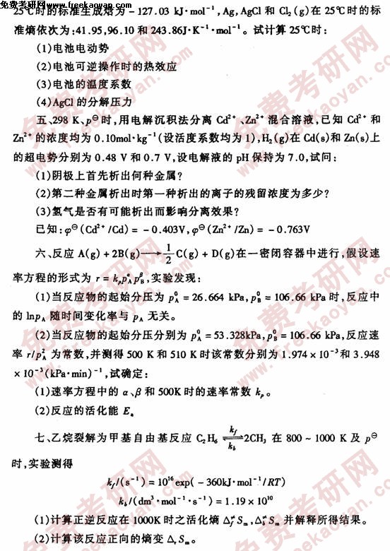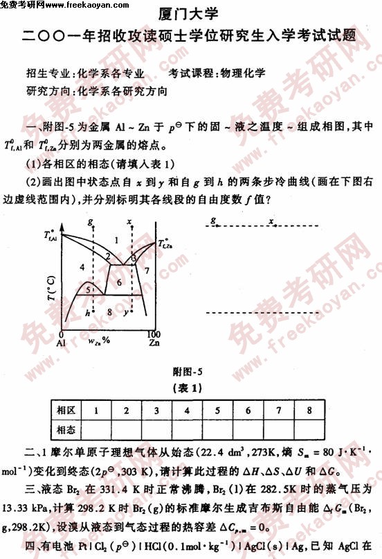 厦门大学1990年硕士研究生入学考试物理化学下载 ...