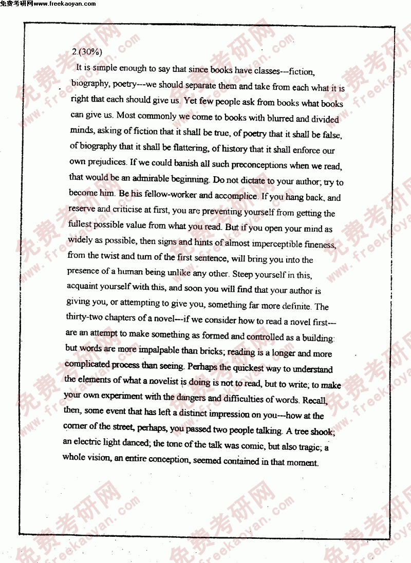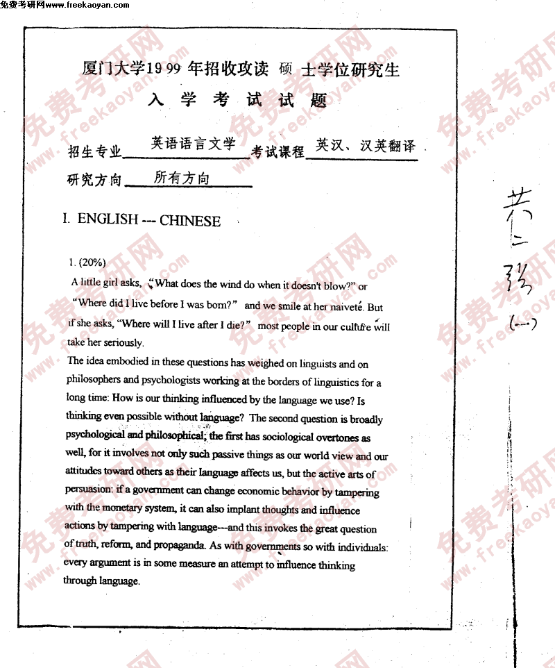 厦门大学2001年硕士研究生入学考试阅读理解及语言学、英美文学基础知识下载 ...