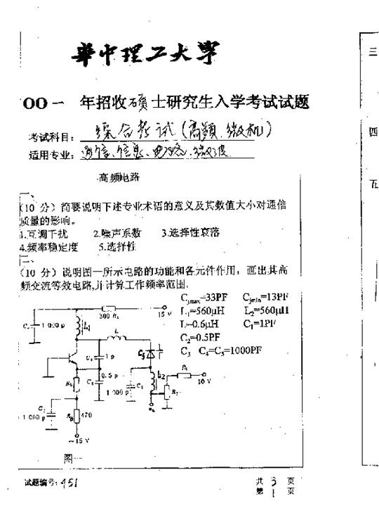 华中科技大学2001年考研真题-高频微机