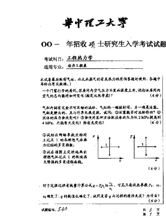 相关话题/华中科技大学 考研真题 工程热力学
